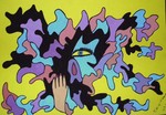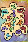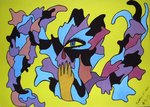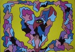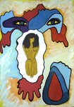 1997het schilderij is opgebouwd uit vormen met op sommige plekken een duidelijk herkenbaar lichaamsdeel of oog