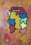 1997een vrouw opgesloten in vormen bekeken door iets in de kleuren